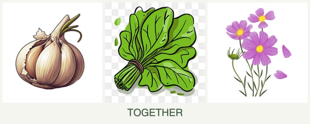 Pest Repellent Properties: Garlic acts as a natural pest deterrent, helping protect spinach and cosmos from pests like aphids and spider mites.