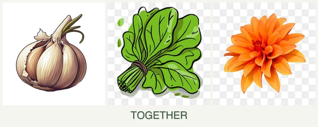 - Pest Control: Garlic helps repel pests, which can benefit spinach and dahlias.
