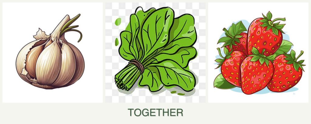 Planting garlic, spinach, and strawberries together offers several advantages: