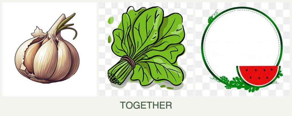 - Optimal Spacing: Keep garlic and spinach close, but provide ample space for watermelon vines.