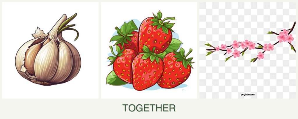 Planting garlic, strawberries, and peaches together offers several advantages: