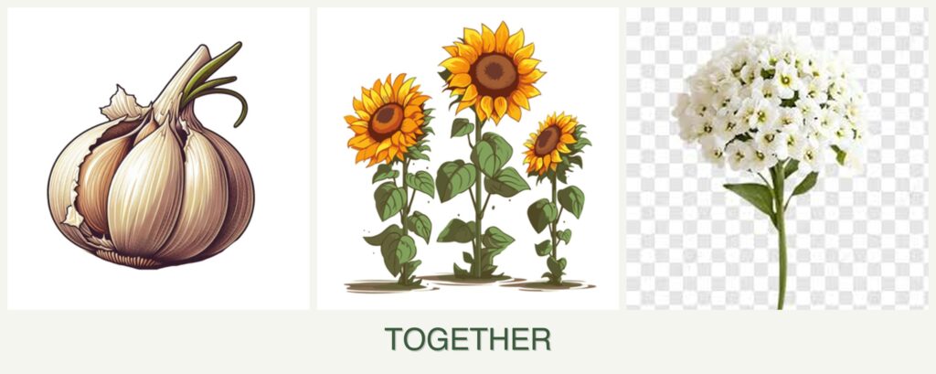 Planting garlic, sunflowers, and alyssum together offers several benefits: