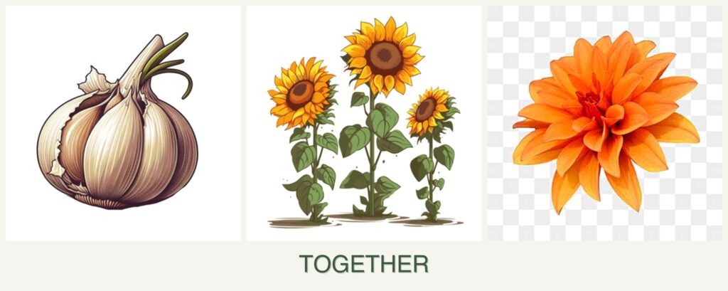 - Pest Repellent: Garlic’s natural compounds can deter pests that might otherwise attack dahlias and sunflowers.