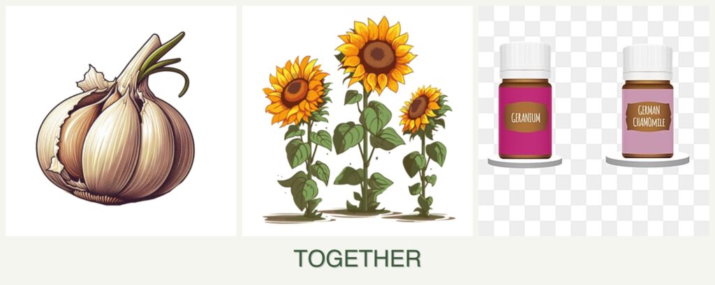 Pest Repellent Properties: Garlic’s natural pest-repelling abilities can help protect sunflowers and geraniums from insects like aphids and beetles.