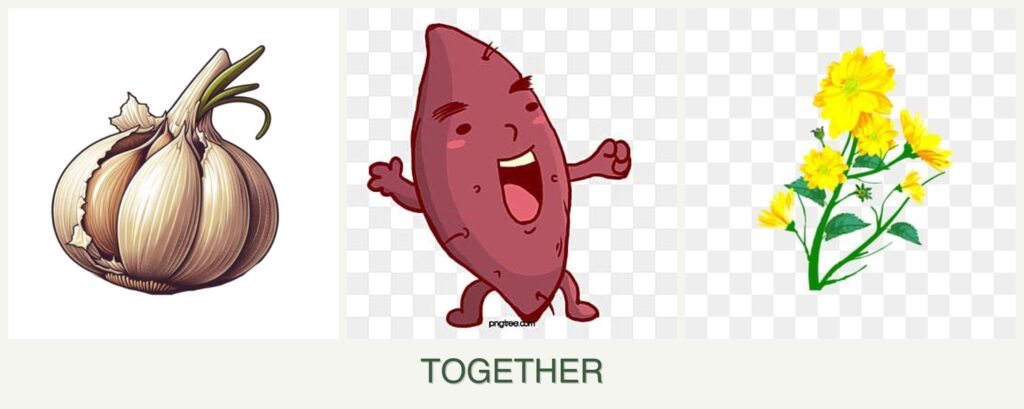 - Pest Control: Garlic’s natural pest-repelling qualities can protect sweet potatoes and calendula.