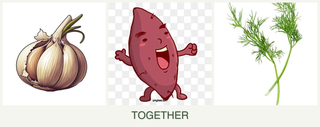 - Nutrient Needs: Garlic and dill have similar nutrient requirements, but sweet potatoes are heavy feeders, potentially leading to competition.