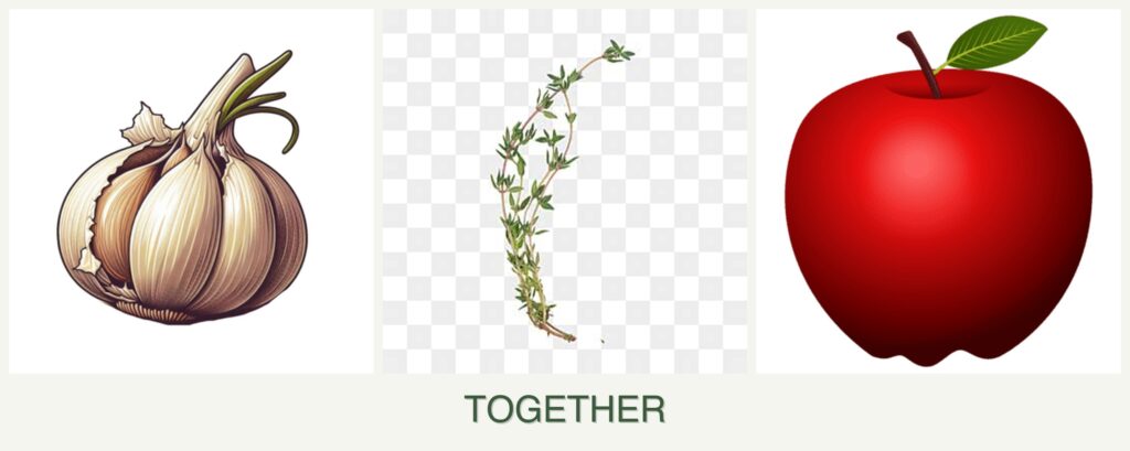 - Pest Repellent Properties: Garlic and thyme can help deter pests that commonly affect apple trees, reducing the need for chemical pesticides.