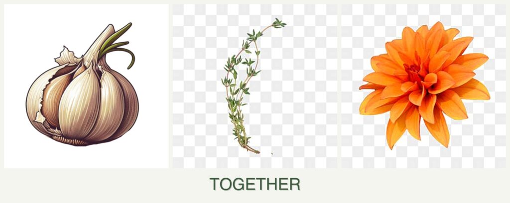 - Pest Repellent Properties: Garlic is known for repelling pests such as aphids and beetles, which can benefit both thyme and dahlias.