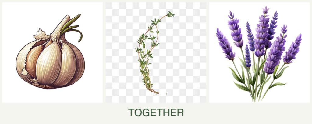 - Improved Flavor and Growth: Thyme and lavender can enhance the flavor profile of garlic.