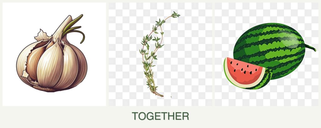 - Nutrient Needs: All three plants benefit from nutrient-rich soil, but melons are heavy feeders compared to garlic and thyme.
