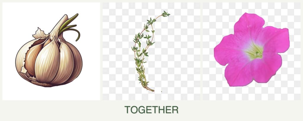 - Pest Repellent Properties: Garlic’s natural pest-repelling abilities can protect thyme and petunias from common garden pests.