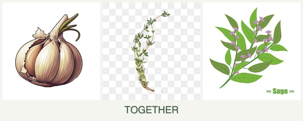 - Improved Flavor and Growth: The aromatic nature of thyme and sage can enhance the flavor of garlic, and vice versa.