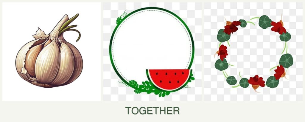 - Growth Requirements: Garlic prefers cooler weather and can be planted in early spring, while watermelons thrive in warm temperatures. Nasturtiums are adaptable and can grow in various conditions.