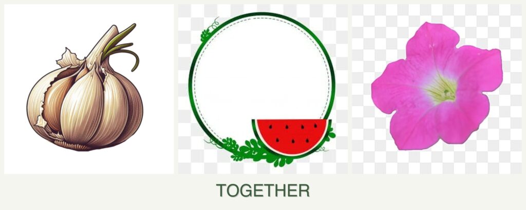 Pest Control: Garlic can help repel certain pests, but its strong odor and growth habits can interfere with the growth of watermelons and petunias.