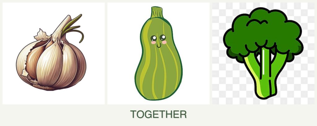 Planting garlic, zucchini, and broccoli together offers several advantages: