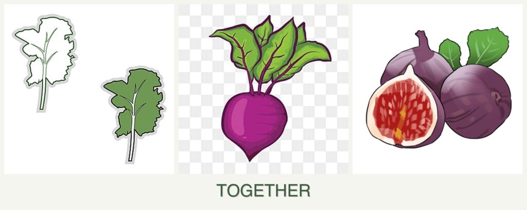 Kale and beets complement each other well. Kale’s leafy canopy can provide partial shade, which helps keep the soil moist for beets. Meanwhile, beets help improve soil structure as their roots break up the soil. Figs, being trees, need ample space and do not directly benefit from these vegetables but can coexist in a larger garden setting with proper spacing.