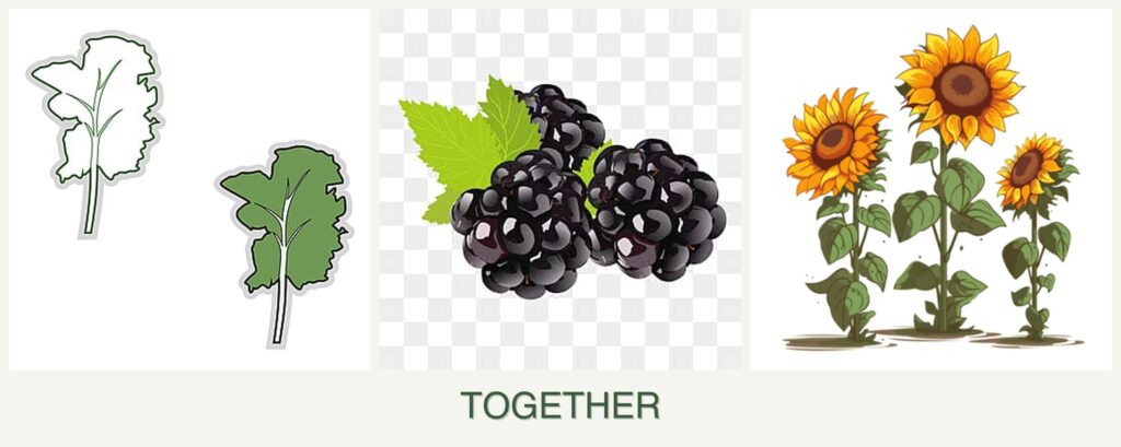 - Growth Requirements: Kale and sunflowers both thrive in full sun, while blackberries prefer a bit of shade. This can work if you use sunflowers to provide partial shade for blackberries.