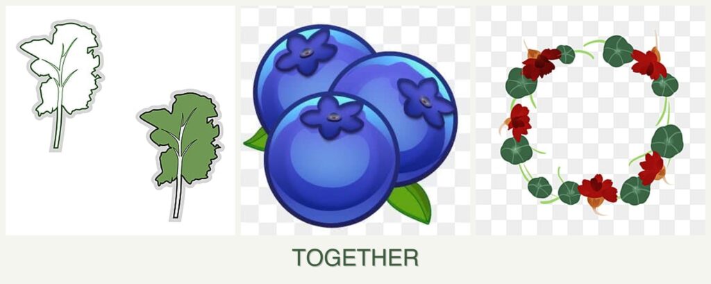 - Resource Competition: Kale and nasturtiums compete for similar nutrients, while blueberries need specific soil conditions.