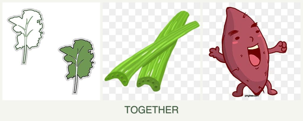 Pest Control: Kale and celery can help deter pests that affect sweet potatoes. Celery’s strong aroma can confuse pests, while kale acts as a decoy for certain insects.
