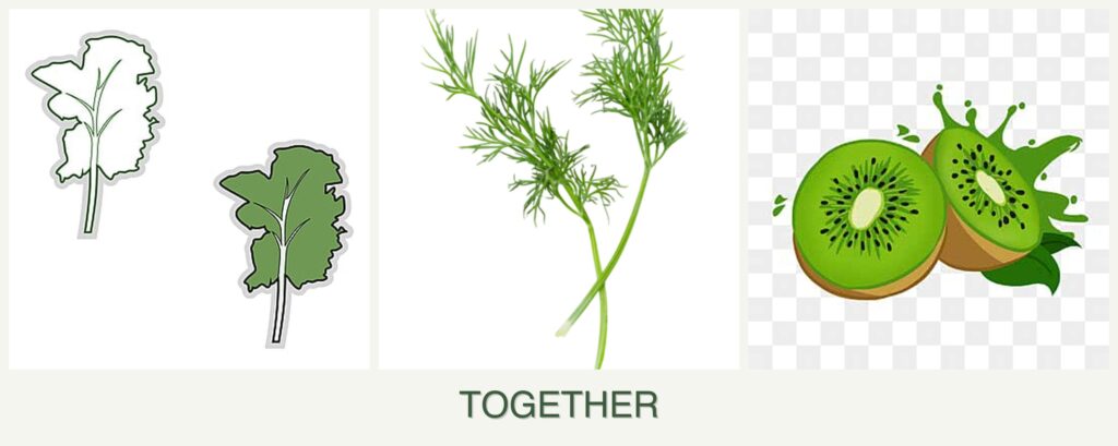 Alternative Companions: Consider planting kale with other brassicas and dill with carrots or cucumbers. Kiwi can be paired with other fruiting vines like grapes.