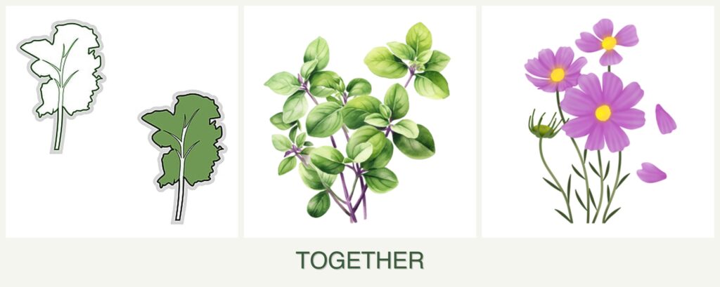 Planting kale, oregano, and cosmos together offers several advantages:
