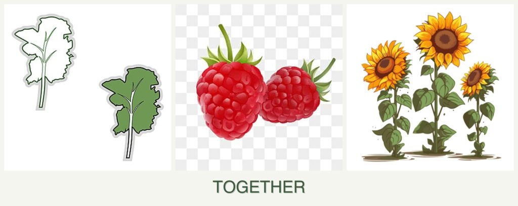 Pest Control: Sunflowers can attract pollinators and beneficial insects, which can help control pests that might otherwise target kale and raspberries. Kale benefits from the presence of sunflowers, which can deter aphids and other pests.