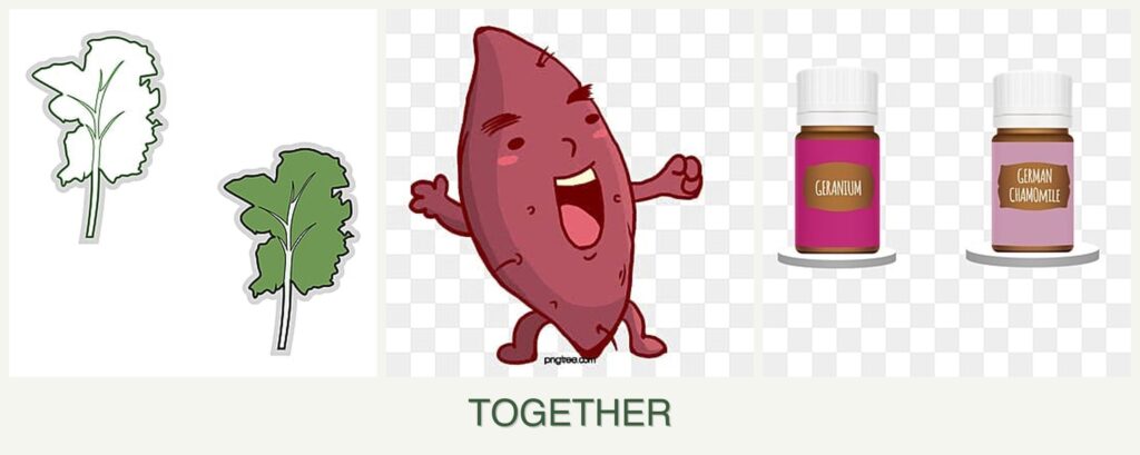 What should not be planted with kale, sweet potatoes, and geraniums?
