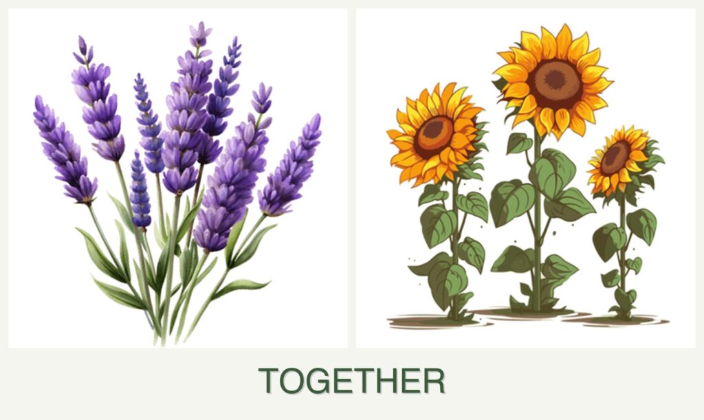 - Resource Competition: Sunflowers’ rapid growth may overshadow lavender, competing for sunlight and nutrients.