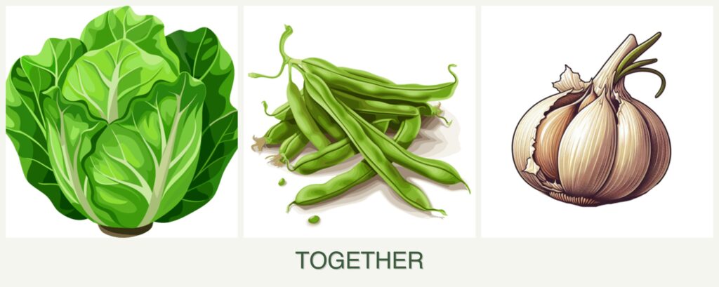- Beans, being nitrogen-fixing plants, can enrich the soil, benefiting both lettuce and garlic.