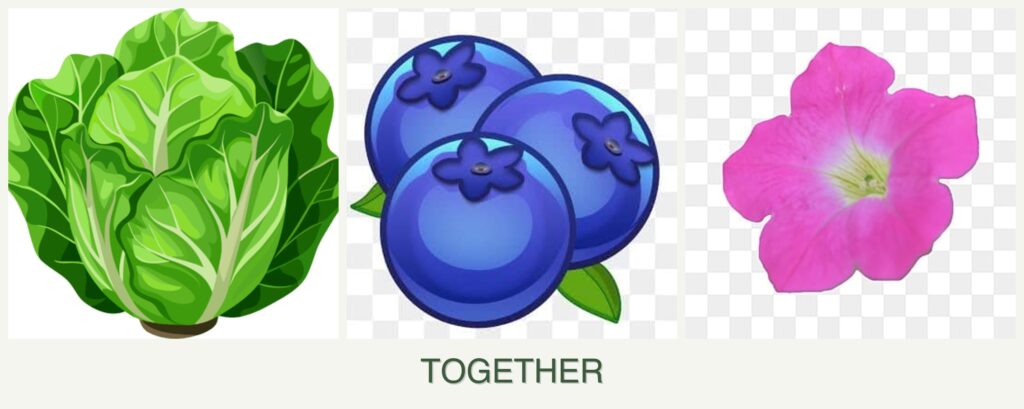 Can you plant lettuce, blueberries and petunias together?