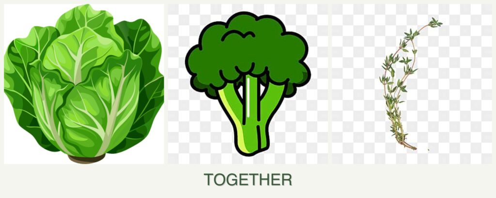 Planting lettuce, broccoli, and thyme together offers several advantages: