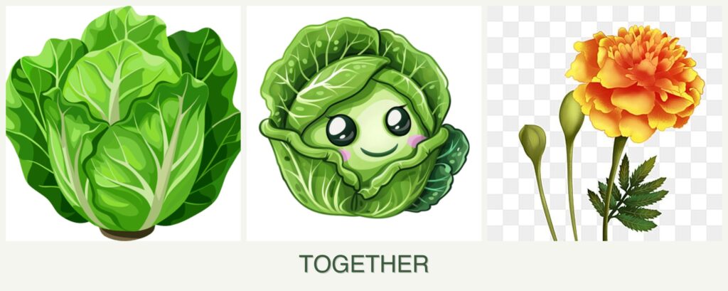 - Pest Control: Marigolds are known for their pest-repellent properties, which can protect lettuce and cabbage from harmful insects like aphids and cabbage worms.