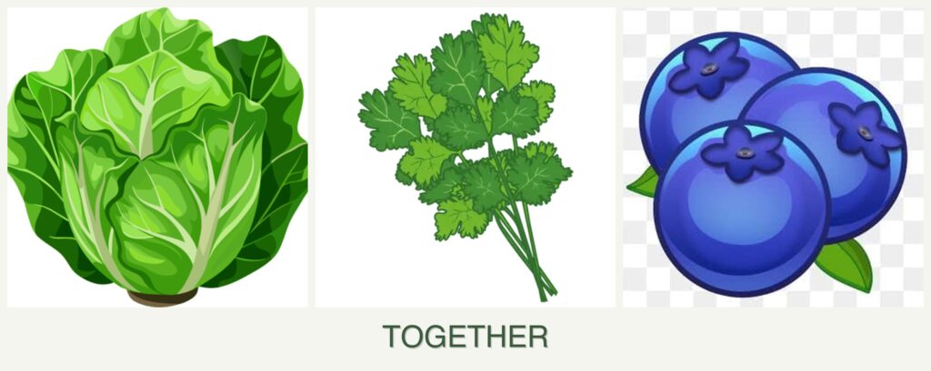Can you plant lettuce, cilantro, and blueberries together? The answer is NO. While lettuce and cilantro can grow well together, blueberries have different requirements that make them incompatible with these two.