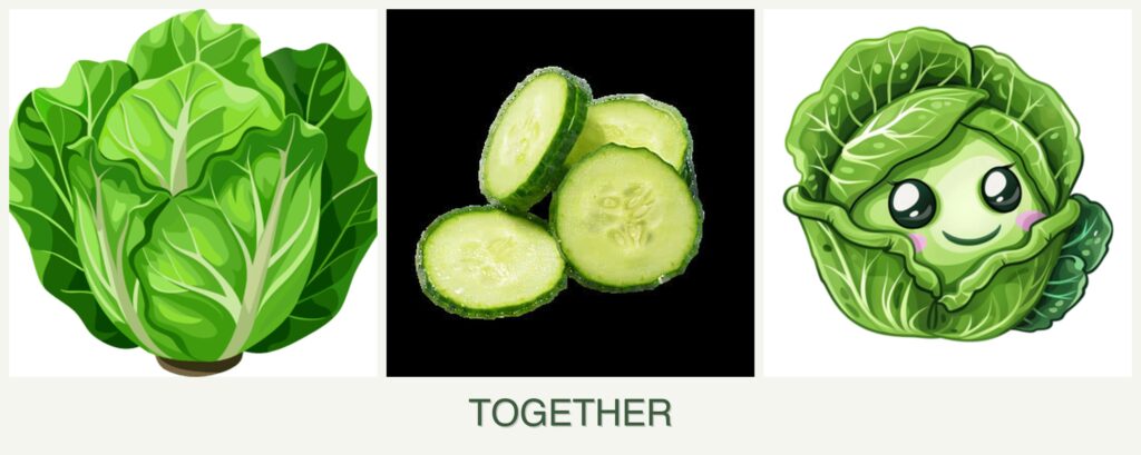 - When is the best time to plant these plants together? Plant lettuce in early spring, followed by cucumbers and cabbage as temperatures rise.