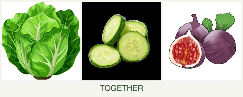 - Pest Control: Cucumbers and lettuce can benefit from each other’s pest-repelling properties, but figs do not offer the same synergy.