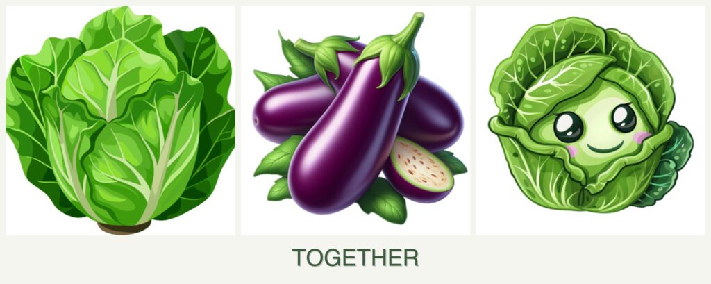 - Growth Requirements: Lettuce prefers cooler temperatures and partial shade, which it can receive from the taller cabbage and eggplant. Eggplants thrive in warm conditions with full sun, while cabbage prefers cooler weather but can tolerate sun.