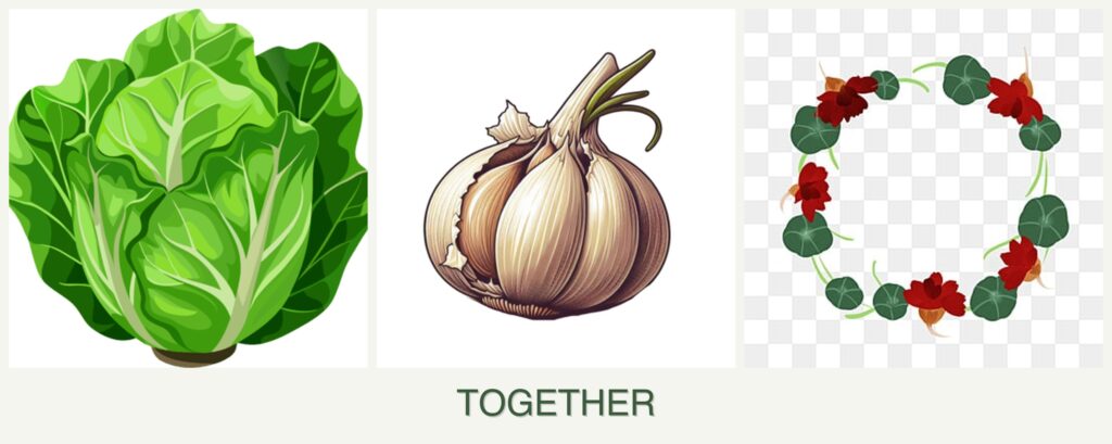 Planting lettuce, garlic, and nasturtiums together offers several advantages: