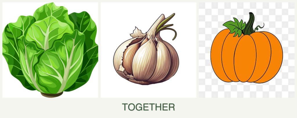 Pest Repellent Properties: Garlic acts as a natural pest deterrent, protecting lettuce and pumpkin from common garden pests.