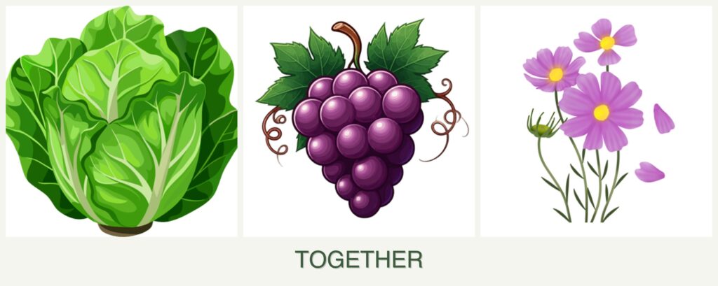 Planting lettuce, grapes, and cosmos together offers several advantages: