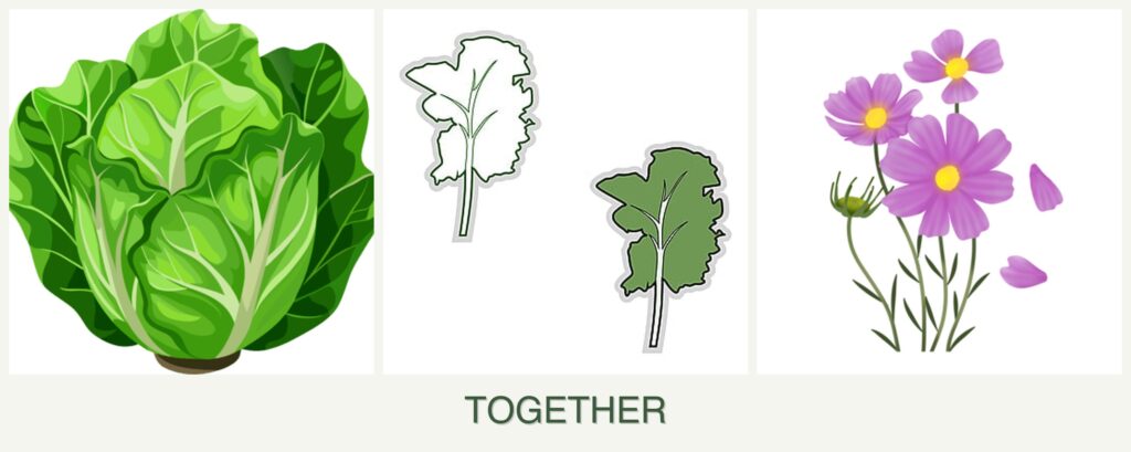 Planting lettuce, kale, and cosmos together offers several benefits: