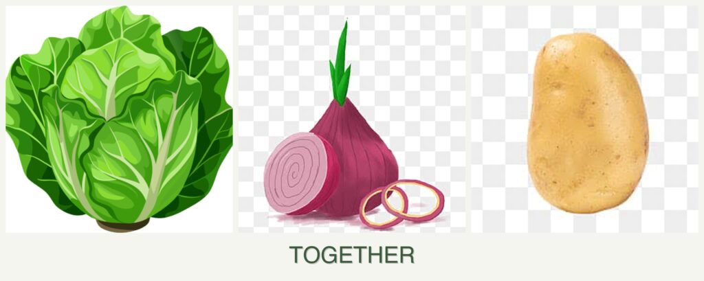 Growth Requirements: Lettuce, onions, and potatoes have different growth habits, which can complement each other. Lettuce grows low to the ground, onions have a vertical growth, and potatoes spread underground.
