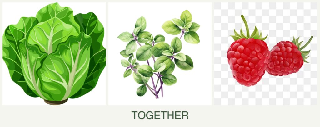 Can you plant lettuce, oregano and raspberries together?