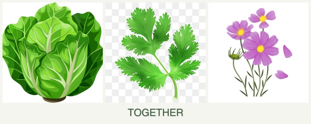 - Pest Control: Cosmos attracts pollinators and beneficial insects like ladybugs, which can help control aphid populations that may affect lettuce and parsley.
