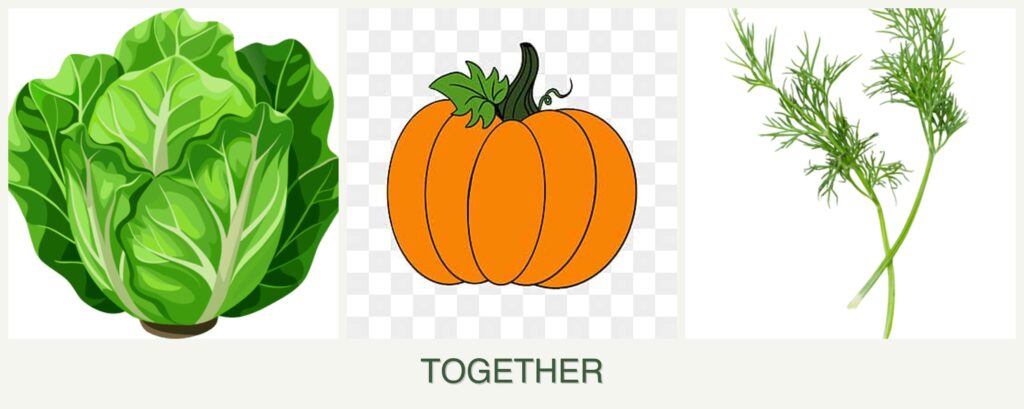 Planting lettuce, pumpkin, and dill together offers several benefits: