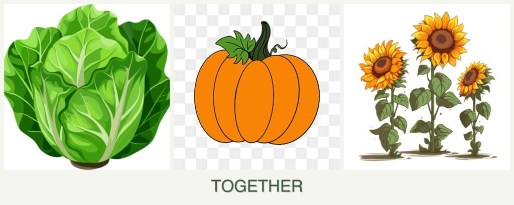 Competition for Resources: Sunflowers can overshadow lettuce if not spaced properly, and pumpkins can overrun smaller plants.