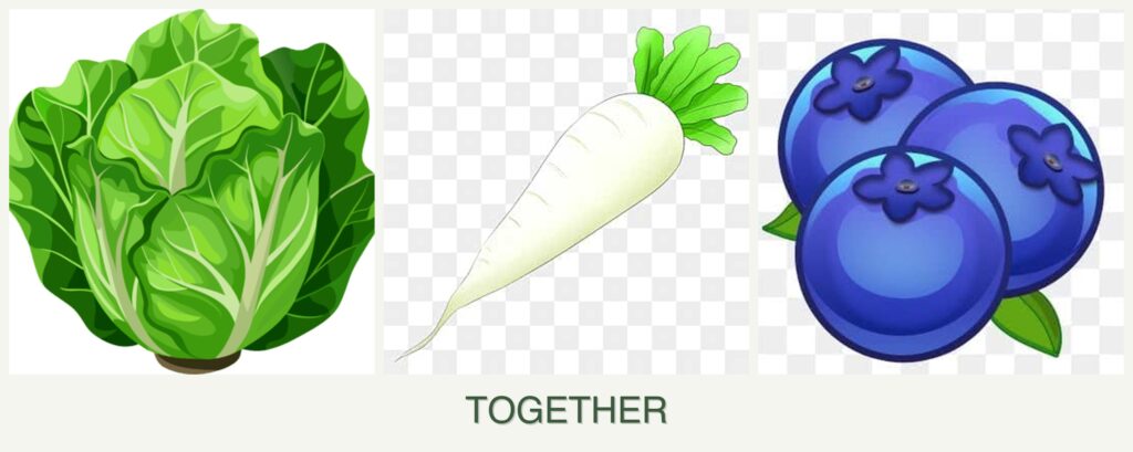 - Growth Requirements: Lettuce and radishes share similar growing conditions, while blueberries need specific soil and sunlight conditions.