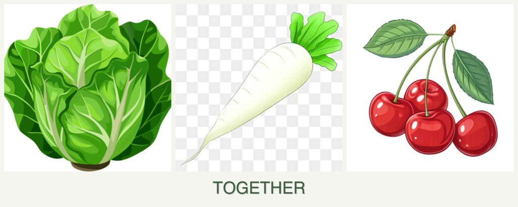 - Growth Requirements: Lettuce and radishes thrive in cooler temperatures and have shorter growing seasons, making them ideal for planting together. Cherries, however, are perennial trees requiring years to mature and specific climate conditions.