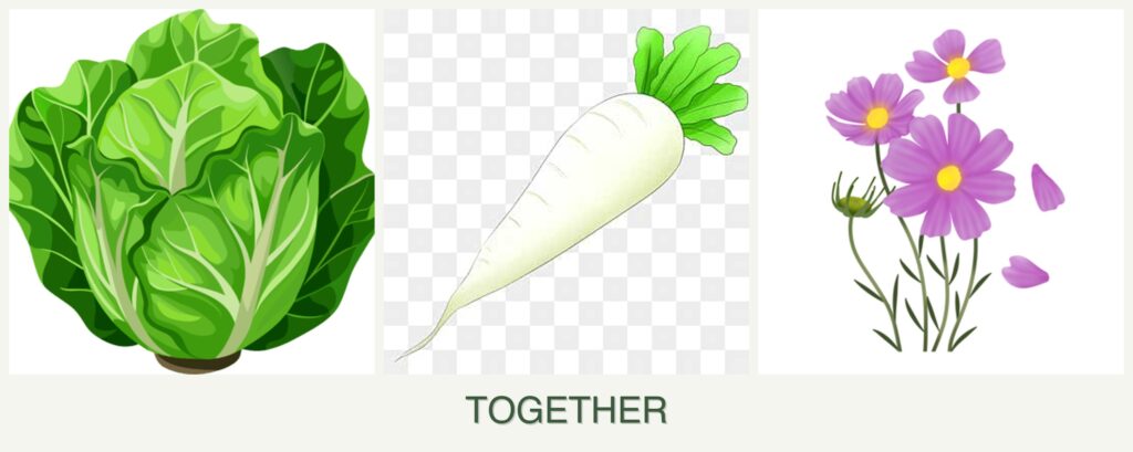 - Pest Control: Cosmos attracts pollinators and beneficial insects, which can help deter pests that might otherwise target lettuce and radishes.