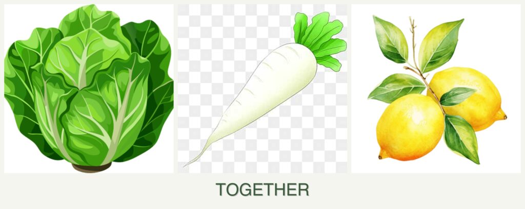 - Nutrient Needs: Lettuce and radishes have shallow roots and do not compete heavily for nutrients, unlike lemons, which have deeper roots.