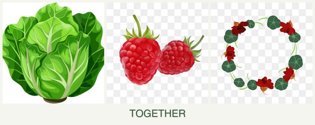 What should not be planted with lettuce, raspberries, and nasturtiums?